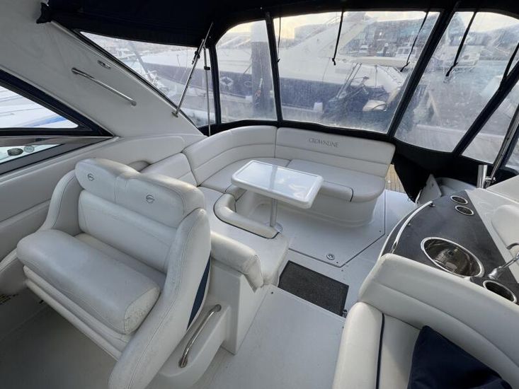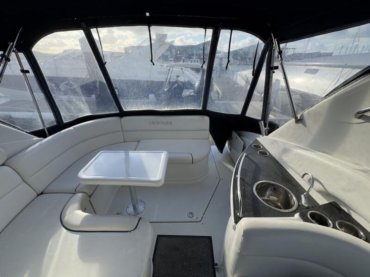 We are delighted to present this Crownline 340 CR to the market. "Moonshine" is a well maintained example of this popular cruiser from Crownline. This one-owner boat has a high specification which includes Bow and Stern Thrusters, Garmin 2020 GR vision Chartplotter/Radar/AIS (Send and receive), Eberspacher Diesel Heating, Coppercoating in 2018 and benefits from recent work including a New Port Outdrive and Transom Shield (Dec 2024/Jan 2025) and a New Starboard Outdrive and Transom Shield (2023).