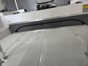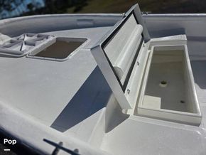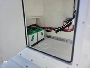 The boat features a 50-gallon fuel tank, bilge pump, baitwell plumbing, and four trolling rod holders, along with dual batteries housed inside the spacious center console. A dedicated battery locker is already in place for a trolling motor, and the large bow area offers excellent open space with additional storage. The leaning post includes four more trolling rod holders, built-in seat storage, and a comfortable footrest for long days on the water.