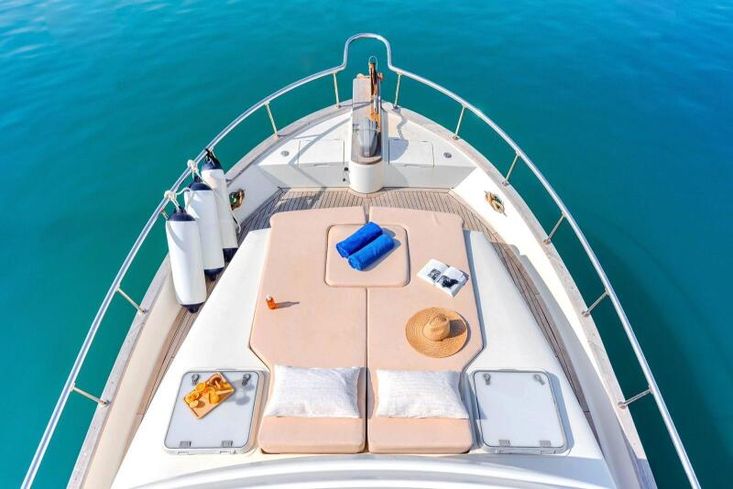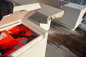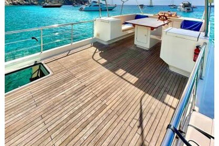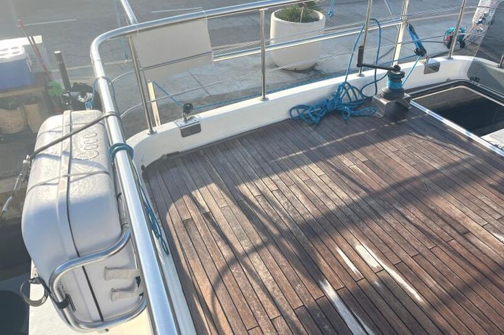 El barco se sometió a una importante remodelación en 2015. El flybridge, las cubiertas de teca, los pasamanos de acero inoxidable, la cocina y todo el barniz del salón se renovaron por completo.