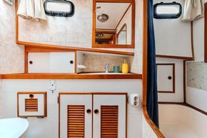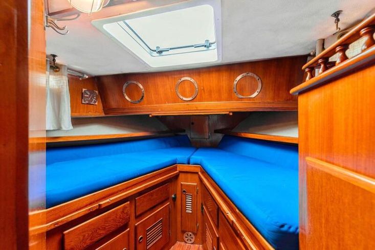 Powered by twin Ford Lehman 120-hp engines, the boat delivers a comfortable cruising speed of 7.5 knots. With 1600 L of fuel and 1,000 L of fresh water, this Eurobanker is equipped for long cruising or simply a day out sailing with friends.
