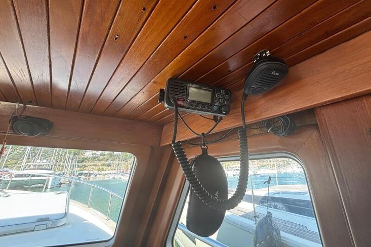 On the flybridge, there is a secondary helm station with the navigation instruments installed.